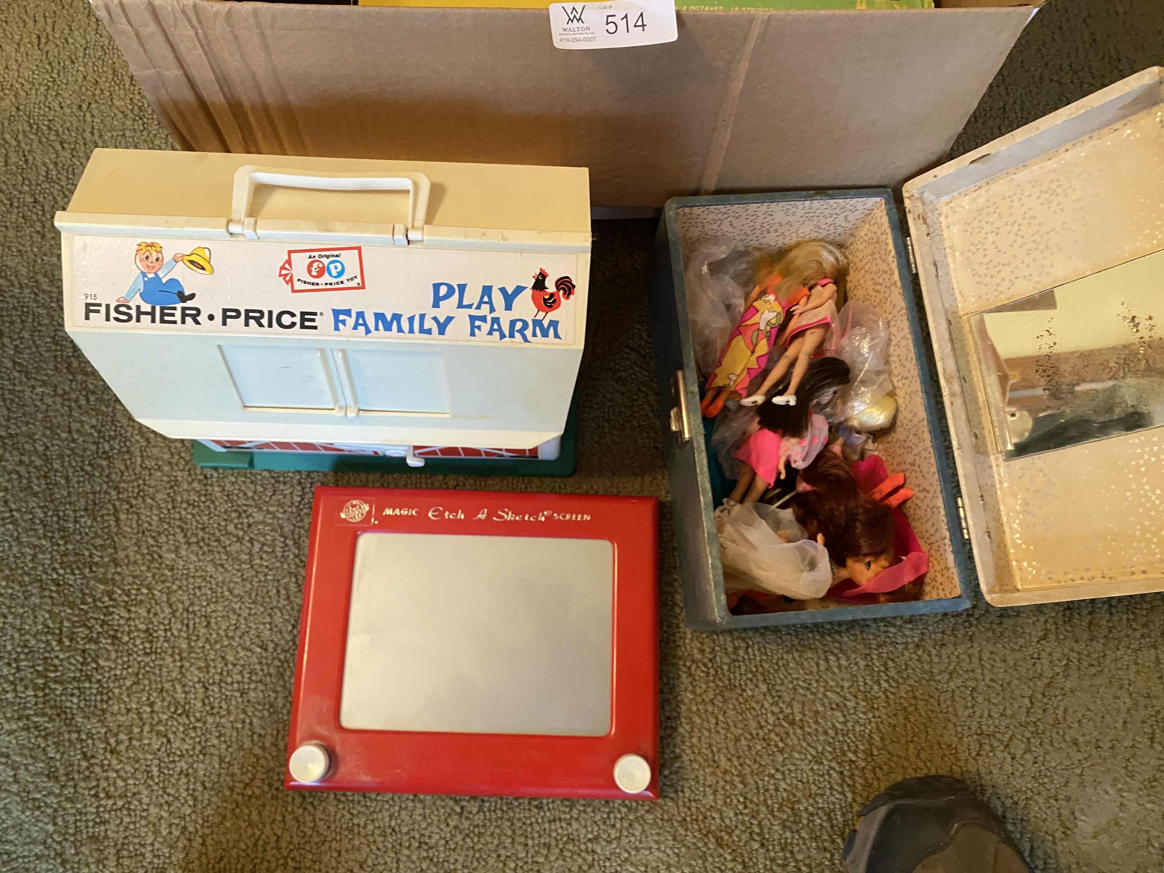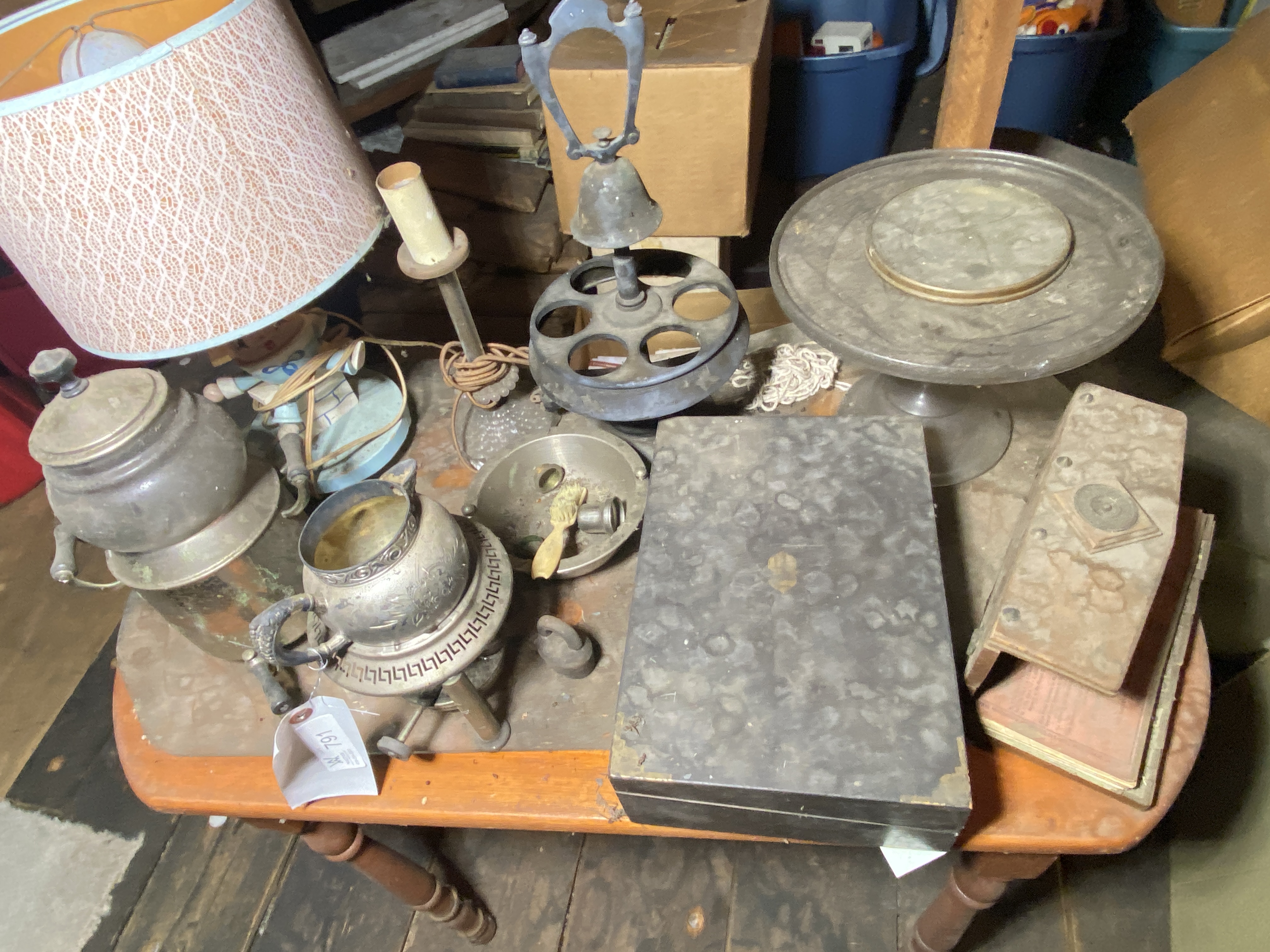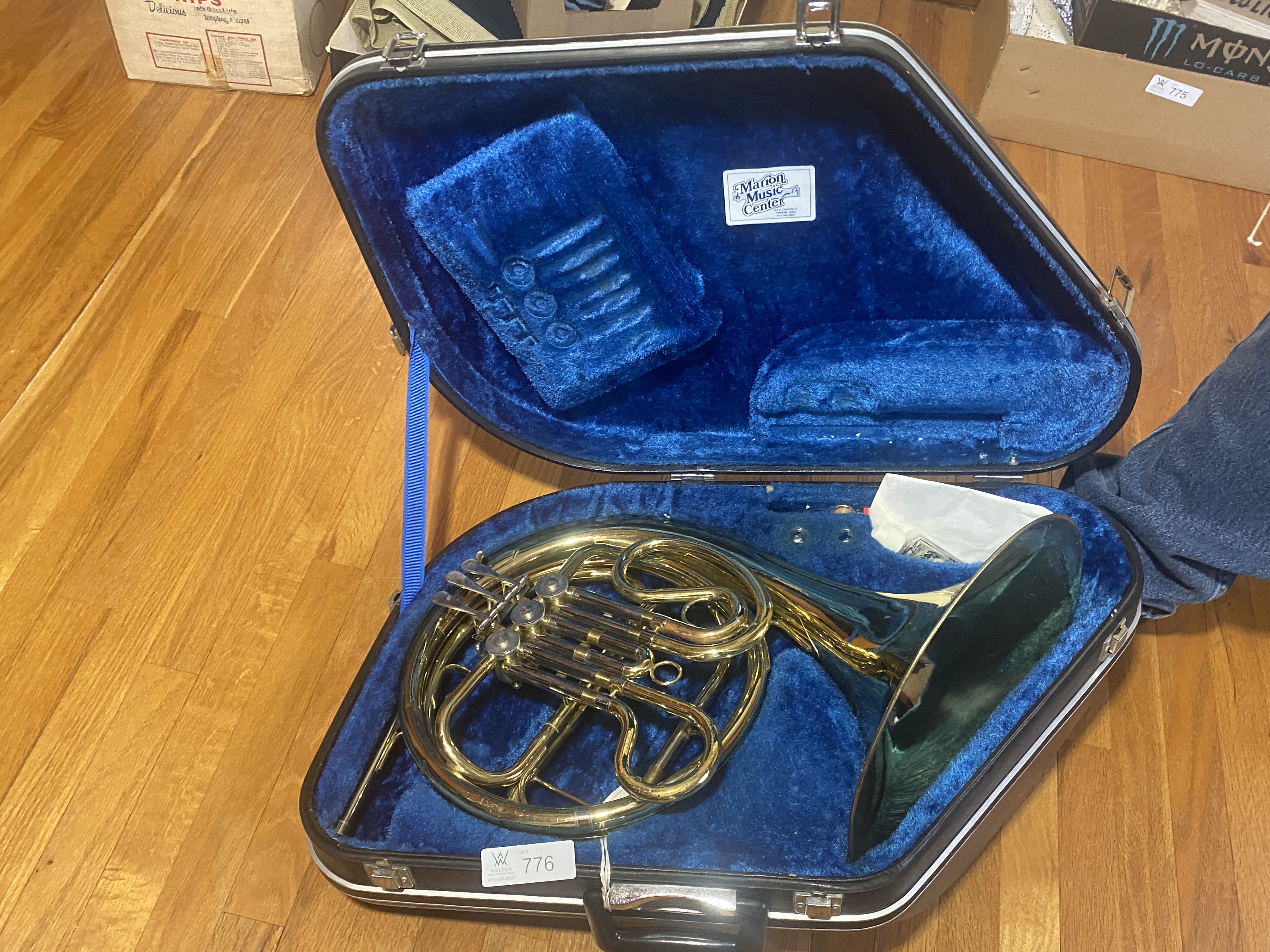 games; 24” Copper kettle; tins; Yamaha French horn; Utah radio speaker; TOYS: