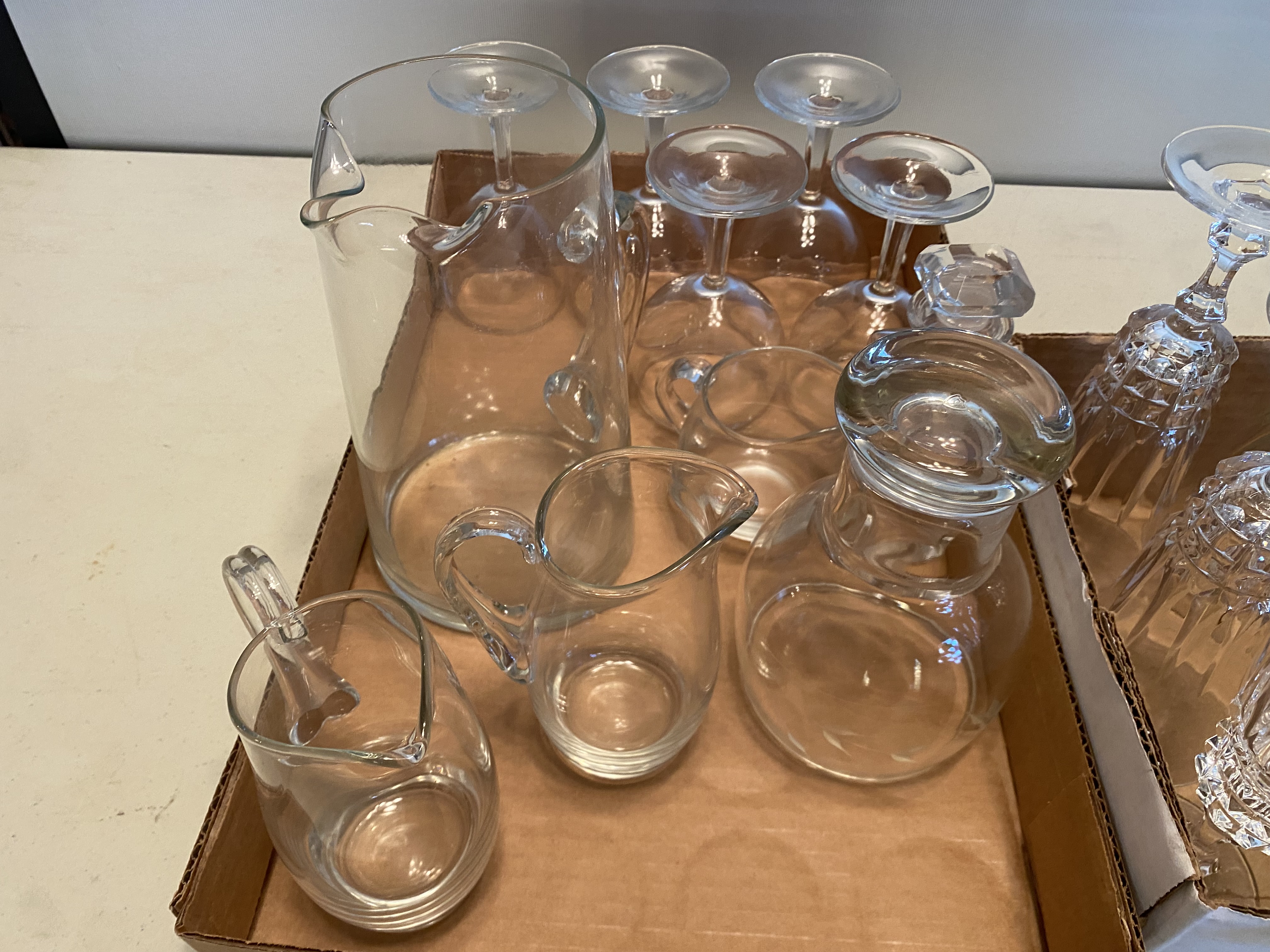 stem ware; Pyrex; cream & sugars; copper bowl.