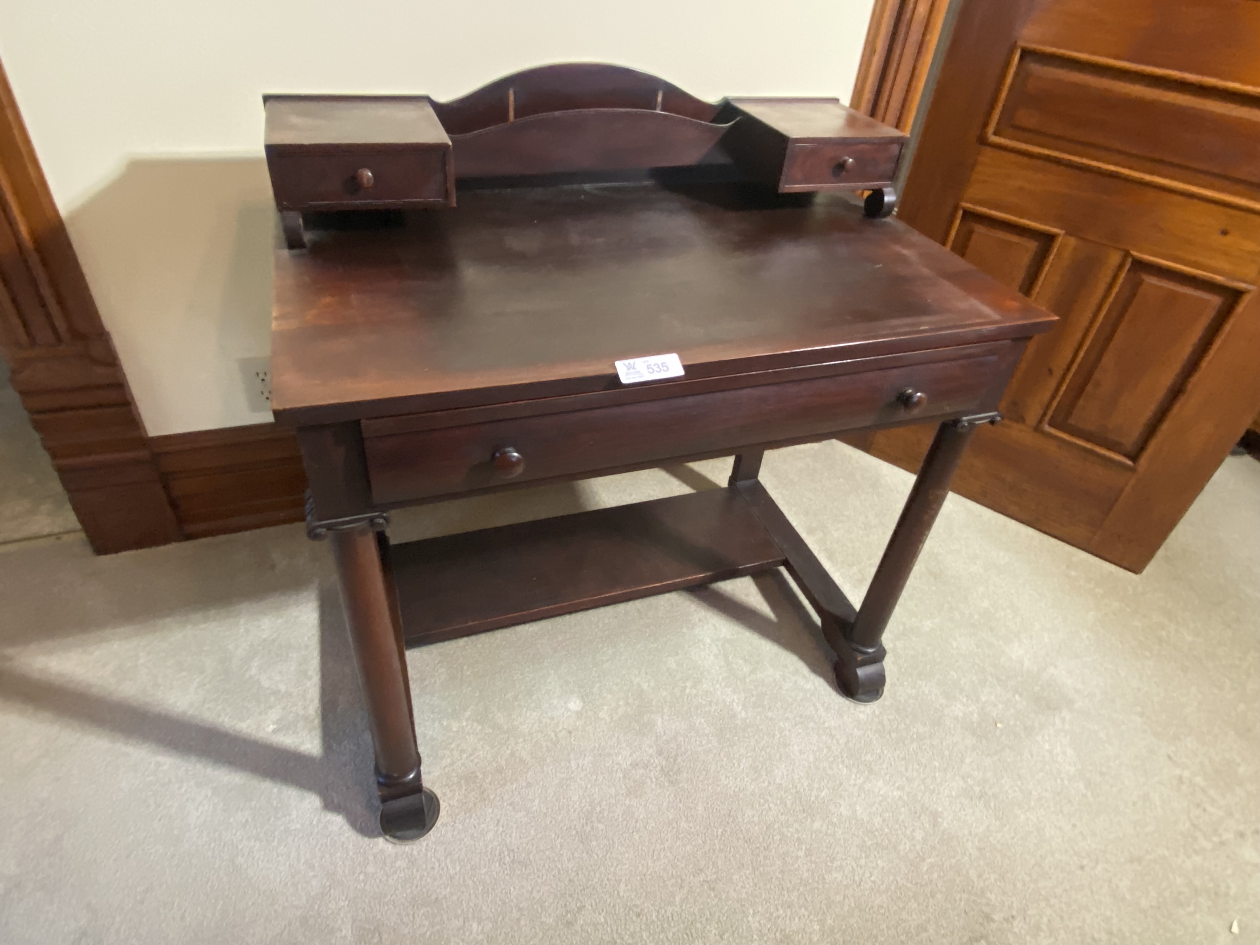 & safe; Edison phonograph; Tiger maple front dresser; mahogany desk w/chair;
