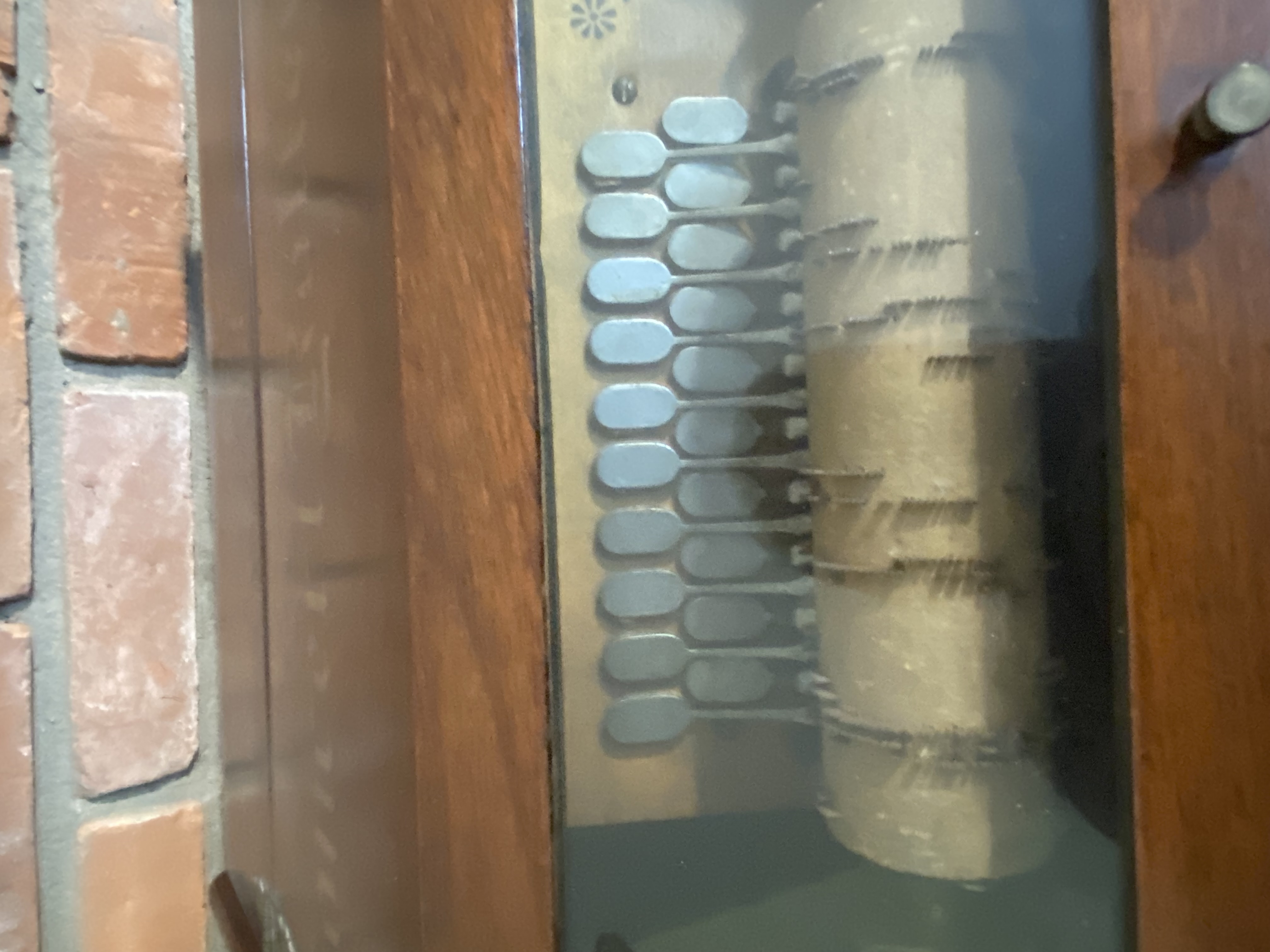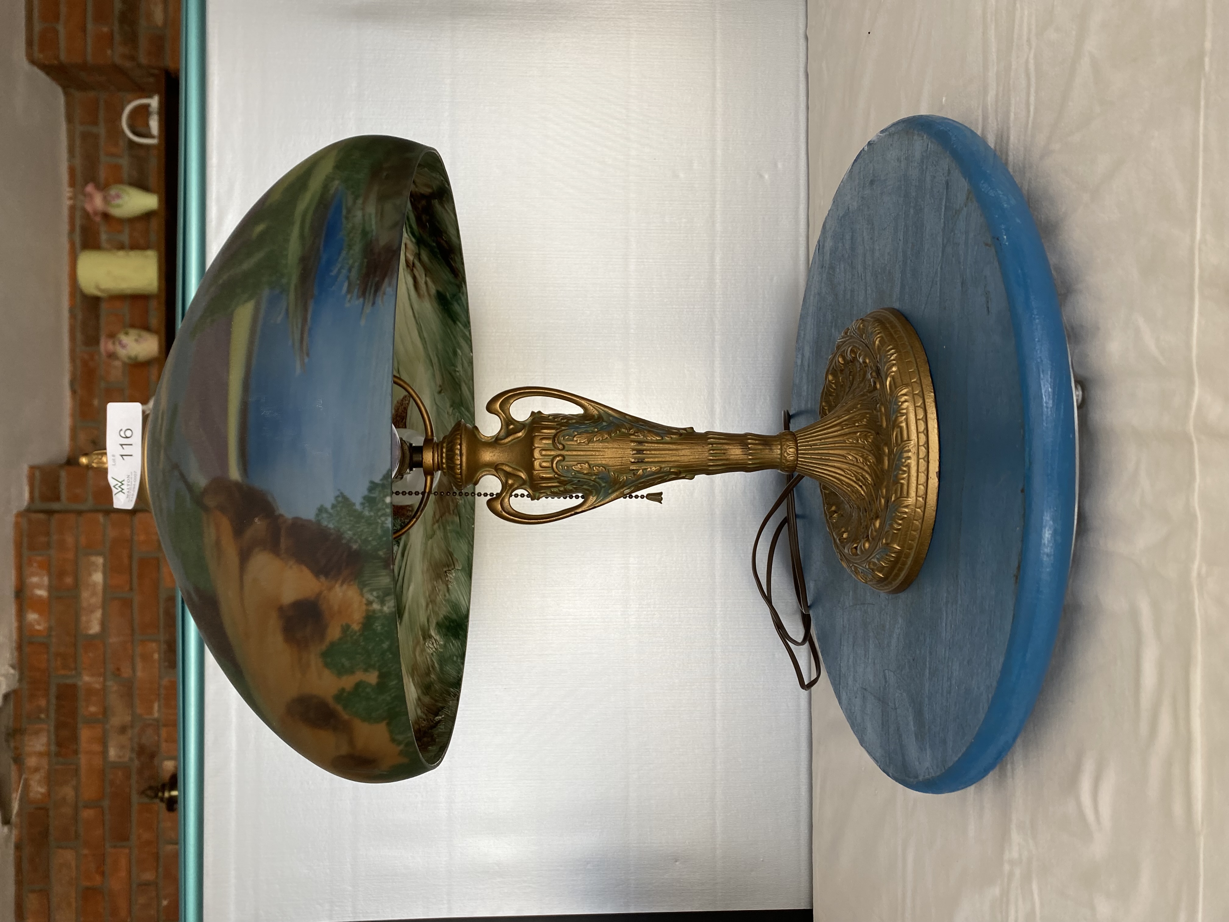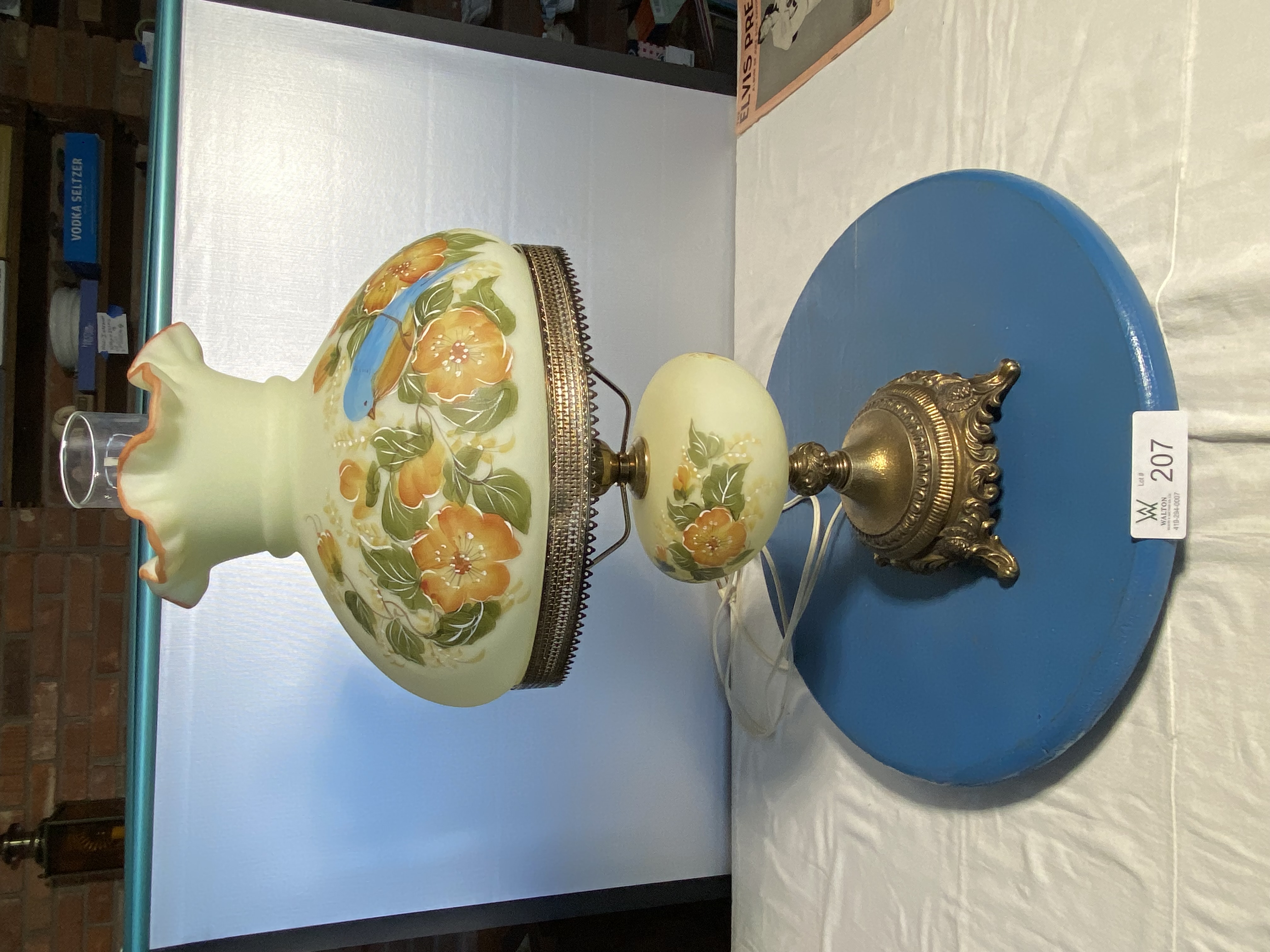 roller organ w/ extra rolls; dressing mirror cast iron seat; cast iron lamp