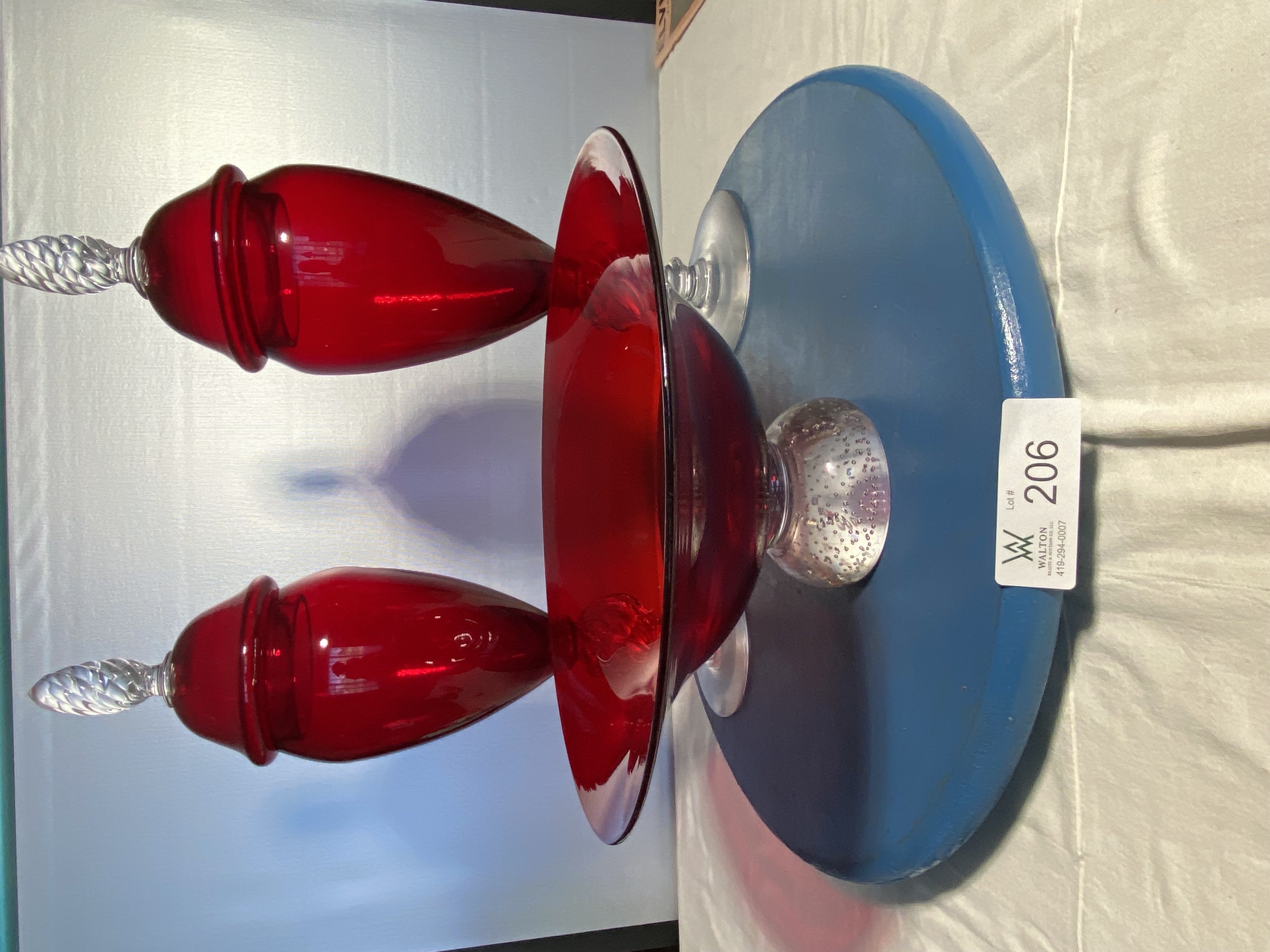 cranberry; stemware, Pyrex; Flo Blue; cranberry glass/vases and baskets; Furniture: