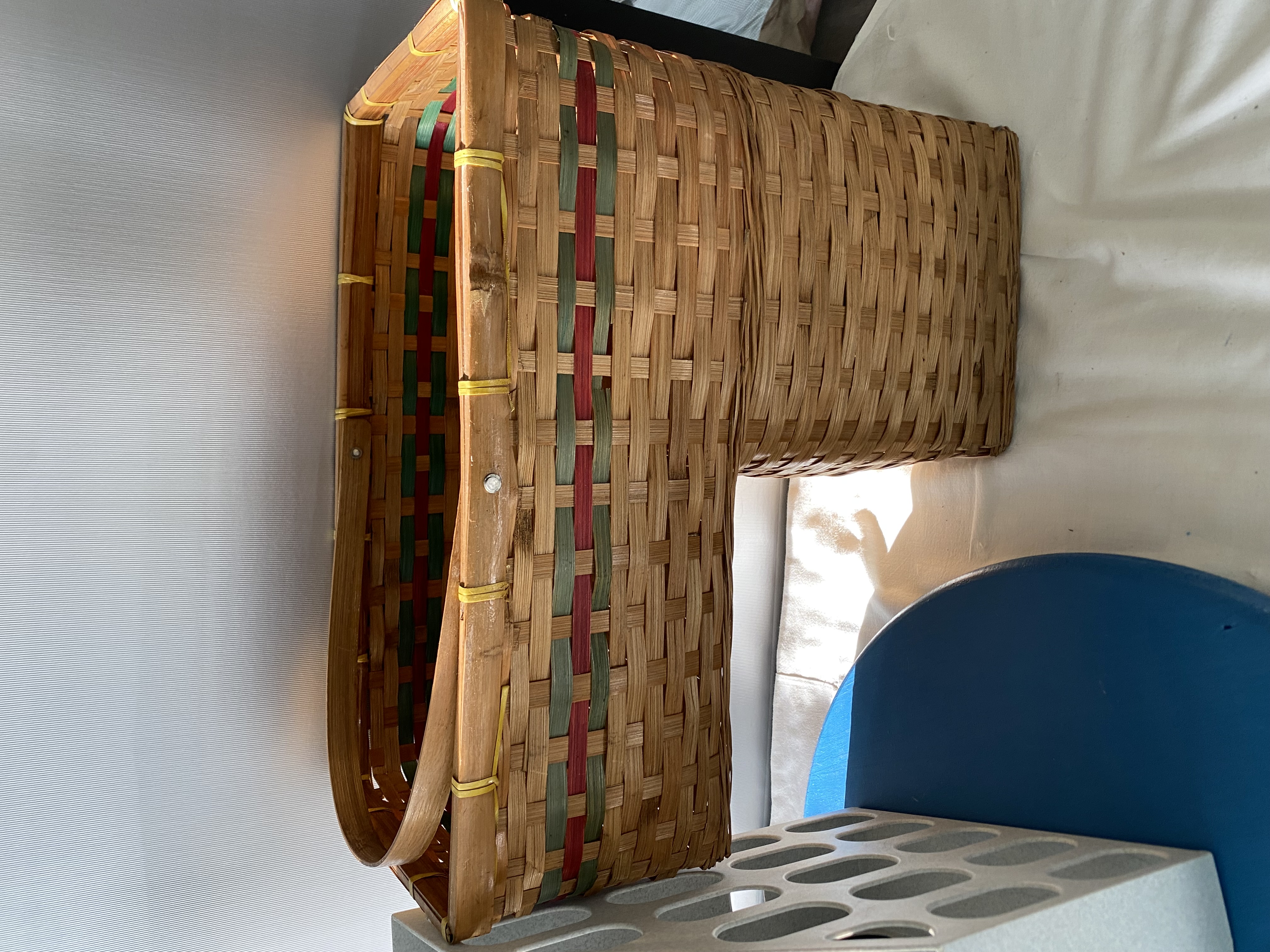 dish w/lid; Wall hanging 42”x29”; Hand Carved Coyote; Pack & Roll Cart;