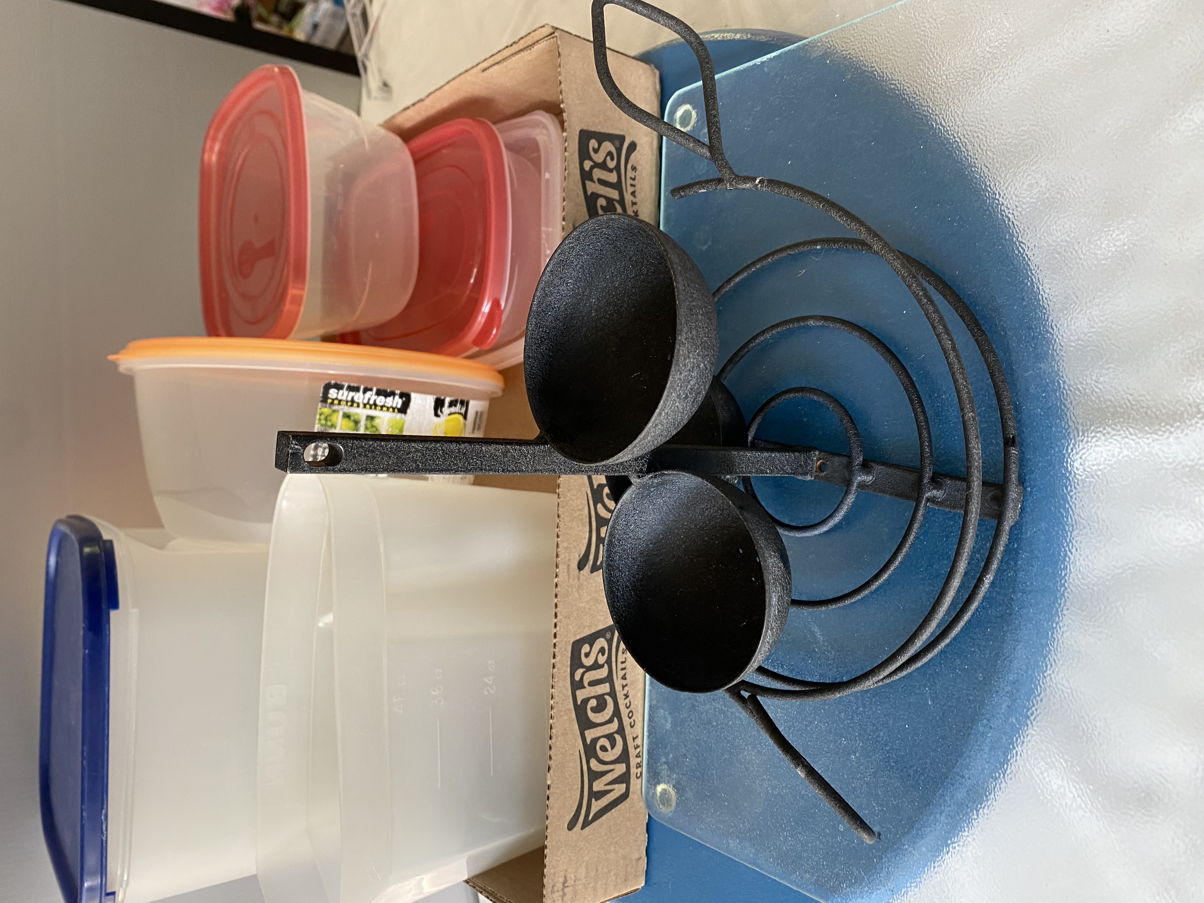 & etc.; Figurines; Glass Paperweight-Applebaum 85’; Corning Baking Dishes; Miscellaneous: Tupperware; Le Tarfait