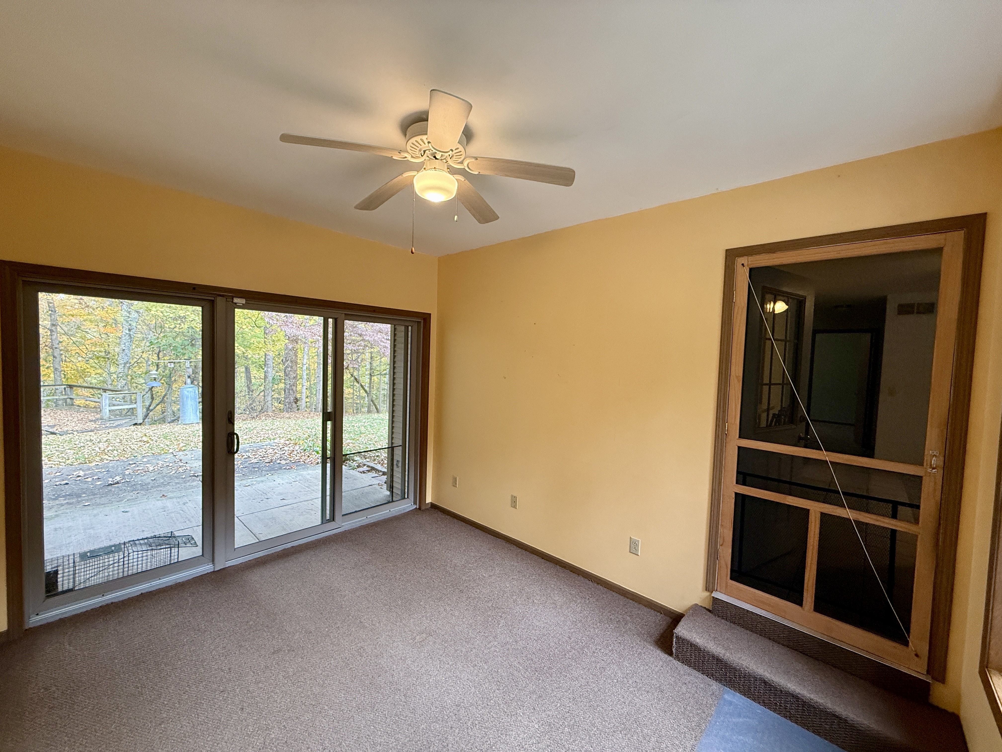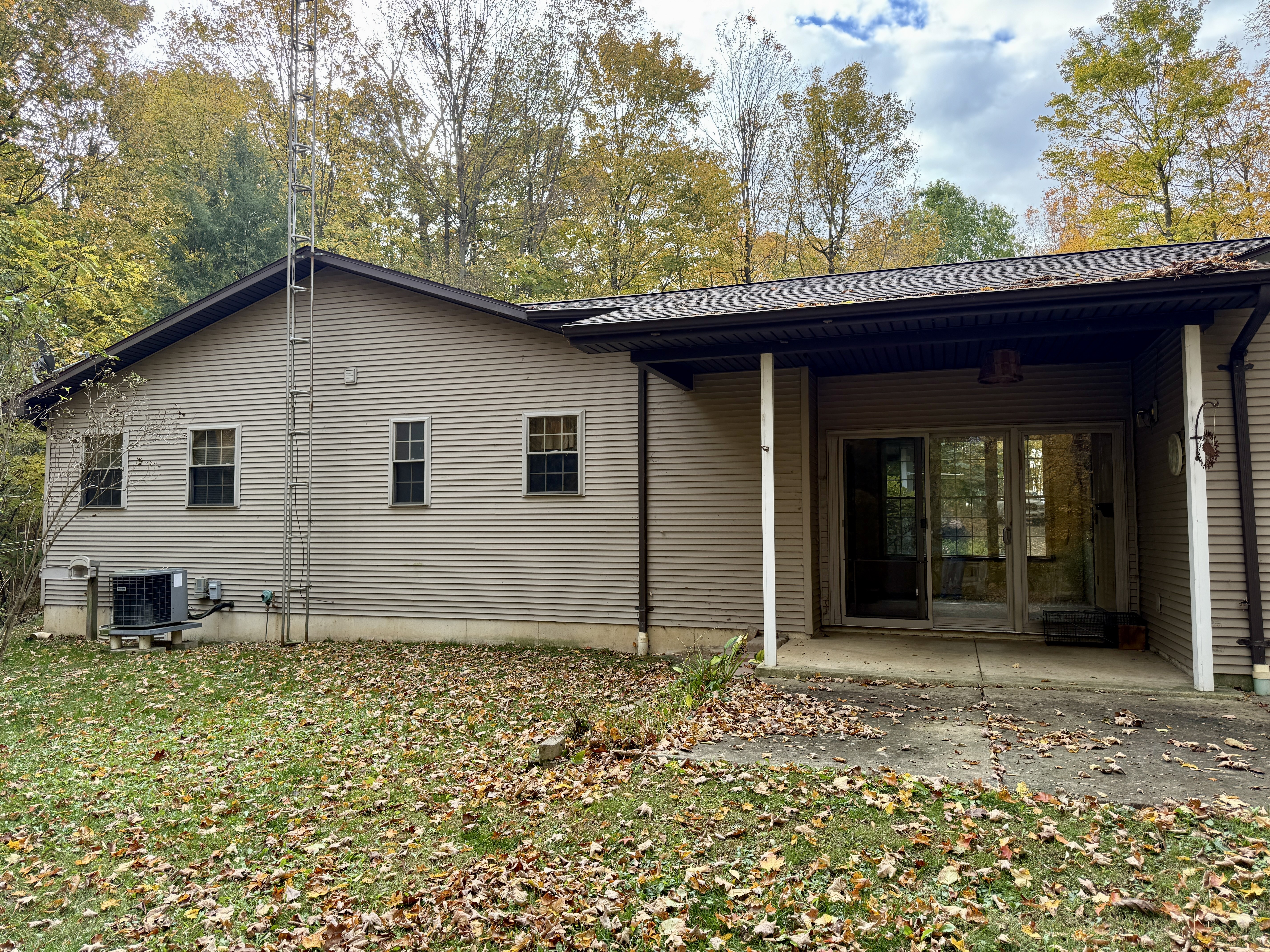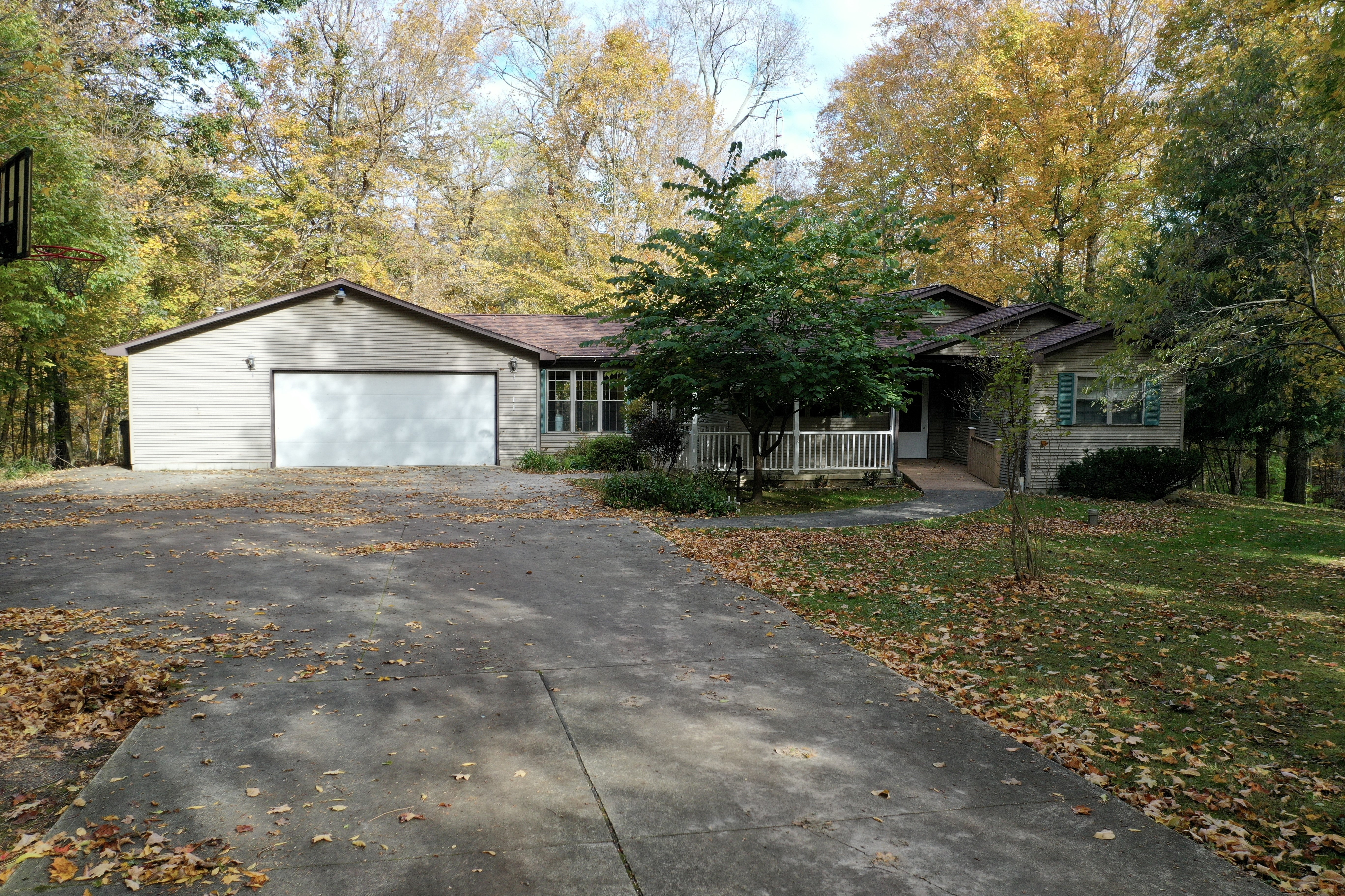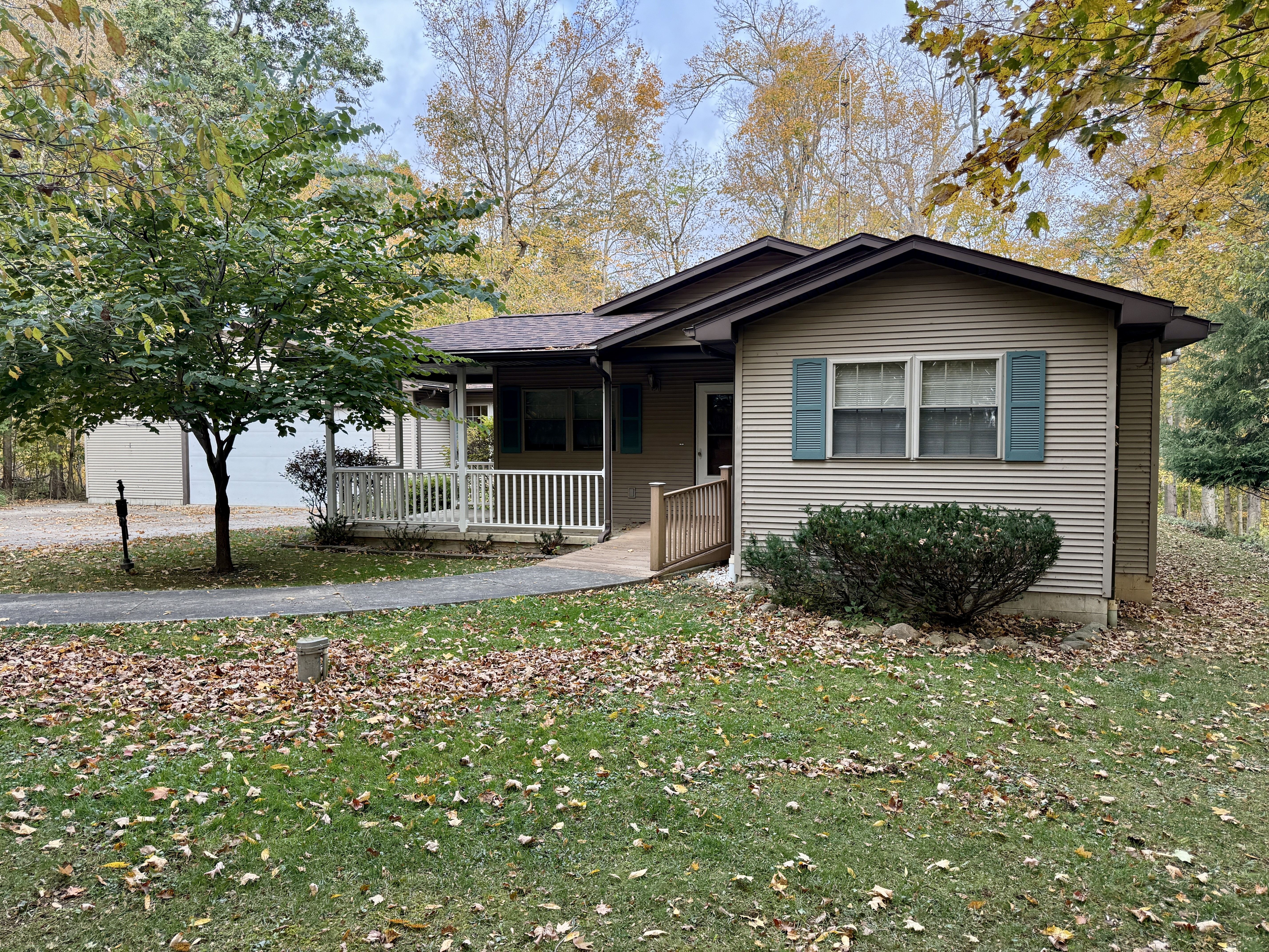 3 Bedroom Frame Ranch w/Basement overlooking Honey Creek. Being 5+/- Acres of totally wooded acres being to the high side of Honey Creek (non-flood). You can enjoy this nature area in your 1999 Ranch home with total area of 2300+ sq. ft. Home has a lg. living rm., modern kitchen w/breakfast bar & stools, all appliances, several closets. Other areas include: 2 full baths, Utility Area, 3 Seasons Rm., Very Lg. Garage Attached, and Portable Storage Shed. This is truly a unique location! Come check it out!